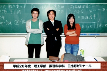 この年は学生の都合(!)で午前10時から始めたのですが 昼には やめたいので,一人2時間と決めて, 1ページしか進まなくても2時間経ったら終わりで 翌週次の人に交代です。 だから 質問すると学生は黙ってしまい 時間が過ぎるのを待っています。 前年よりもメンバー間の仲は良かったようですが ゼミは非常に静かでした。 この方式は あまりよくないのかもしれません。